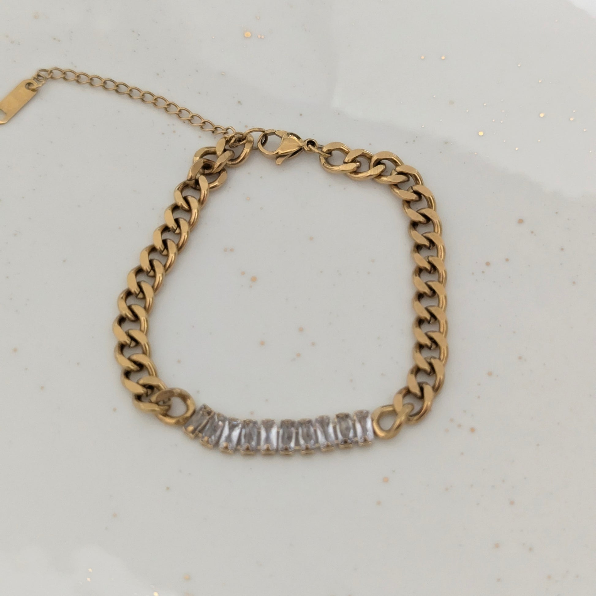 Modern Solid Color 304 Stainless Steel 18k Gold Plated Artificial Rhinestone Chain Bracelet